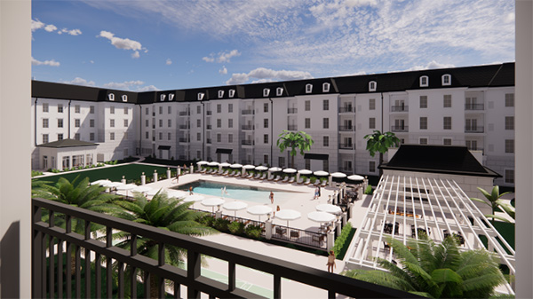 The hotel will cater to busy guests with a large grab-and-go marketplace featuring fresh, convenient food products. A fitness center and on-site washer/dryer amenities will be available. Outdoor recreation amenities will include a pool and feature lawn game activities. A special fenced dog park will be available for canine guests.