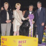Dave purchased his first Newfoundland with his wife, Peggy, in 1965. For 50+ years, Dave and Peggy bred and exhibited top winning Newfoundlands under the Pouch Cove prefix. Nominees for the Working Group twice, they were the recipients of the coveted American Kennel Club Breeder Of The Year award in 2005. They bred approximately 300 Champions including many National Specialty winners and All-Breed Best In Show Winners. Eighteen Pouch Cove Newfoundlands have earned the NCA Versatile Newfoundland title – an award given to dogs that have accomplished an AKC Championship, AKC Obedience title, NCA Water Rescue Dog and NCA Draft Dog titles. Perhaps the most well-known Pouch Cove Newfoundland is “Josh,” CH Darbydale’s All Rise Pouch Cove, the Top Winning Newfoundland in the history of the breed and Best In Show at the 2004 Westminster Kennel Club alongside Michelle Scott (Ostermiller).