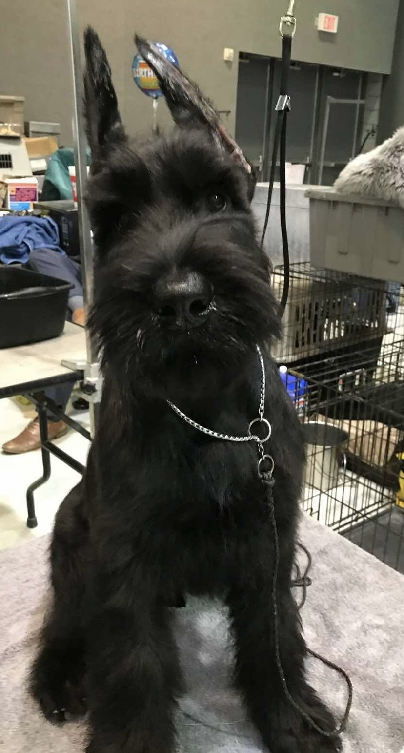 Pictured above as a puppy, this Giant Schnauzer was America’s #1 Giant Schnauzer All-Breed 2021 & 2022. He was the Best In Show winner at the 2021 AKC National Championship as well as the 2022 Giant Schnauzer Club Of America National Specialty Winner. He is the winner of 11 All-Breed Best In Show wins and 48 Working Group First wins.