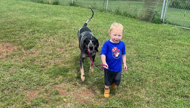 Thank you Kacie Davis Jordan for sharing this adorable photo of your son, Colt, and his best friend, Big John the Bluetick Coonhound. Colt is 2 years old and already an awesome handler!