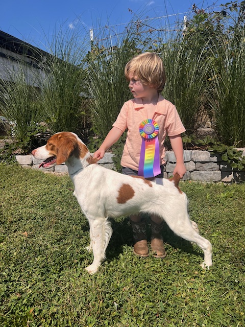 Thank you Reva Dickson for sharing this photo of your son, Levi, and his Brittanys. Levi is pictured at 2 years of age at the American Brittany Club National Specialty and in the first photo at 4 years of age. How adorable is he!