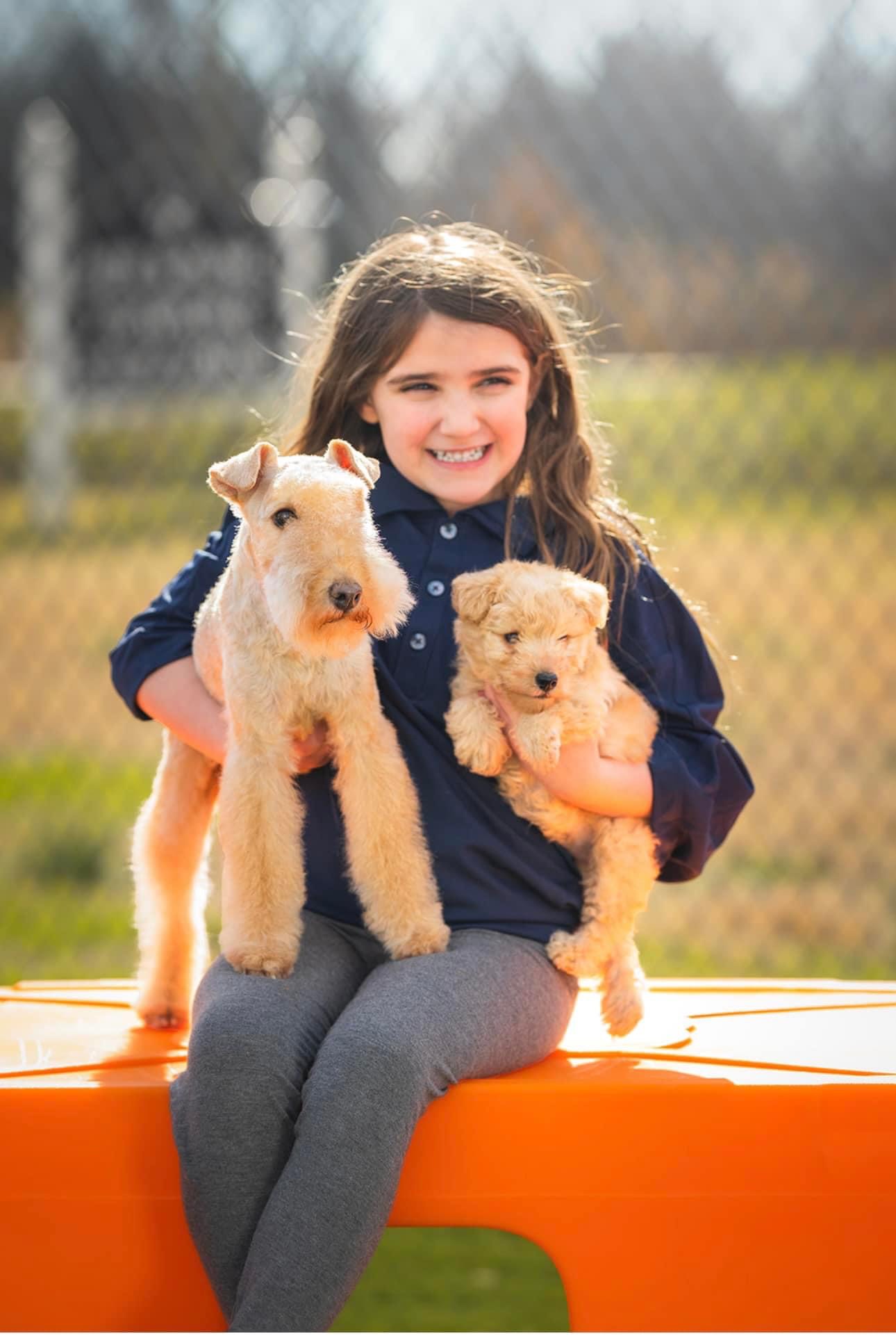 Thank you Sarah Cukier for sharing this adorable photo of your daughter, Mimi, and her favorite Lakelands, MM and Taylor. Mimi says, “She loves Lakelands because they are the cutest puppies. When they are babies they have the cutest paws and love to give most snuggles to her.”
