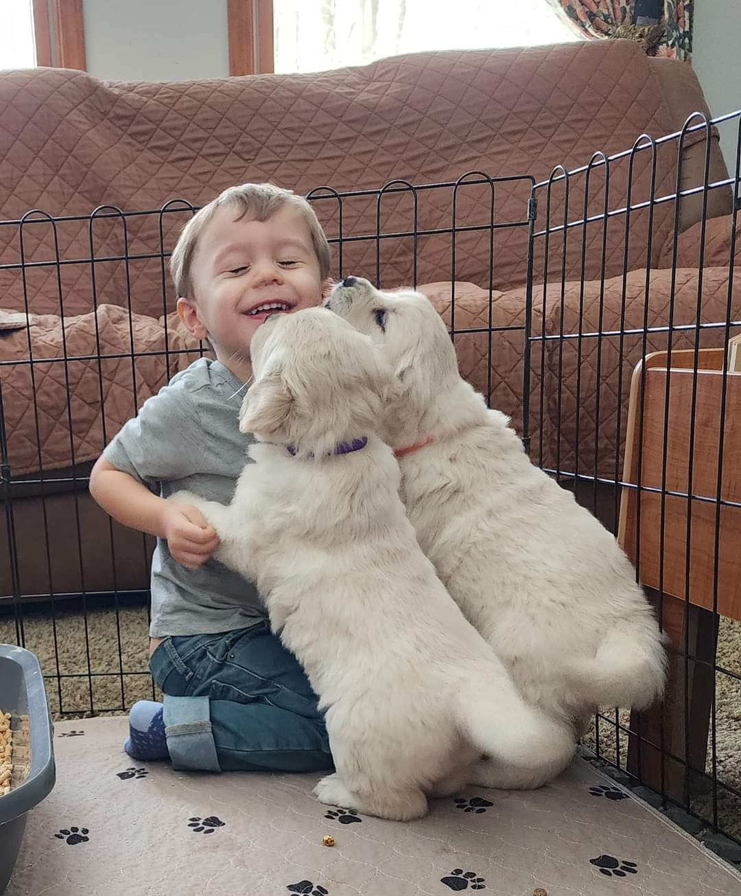 Thank you Tena Sands for sharing this photo of your grandson, Zayne, helping raise and socialize your Golden Retriever puppies. Absolutely adorable!