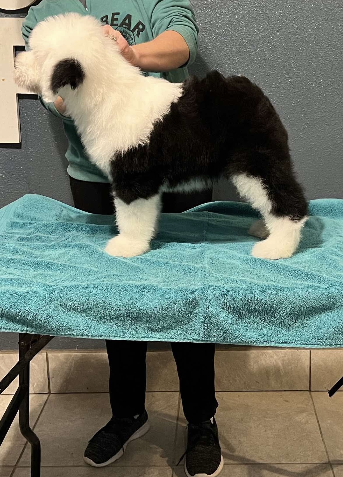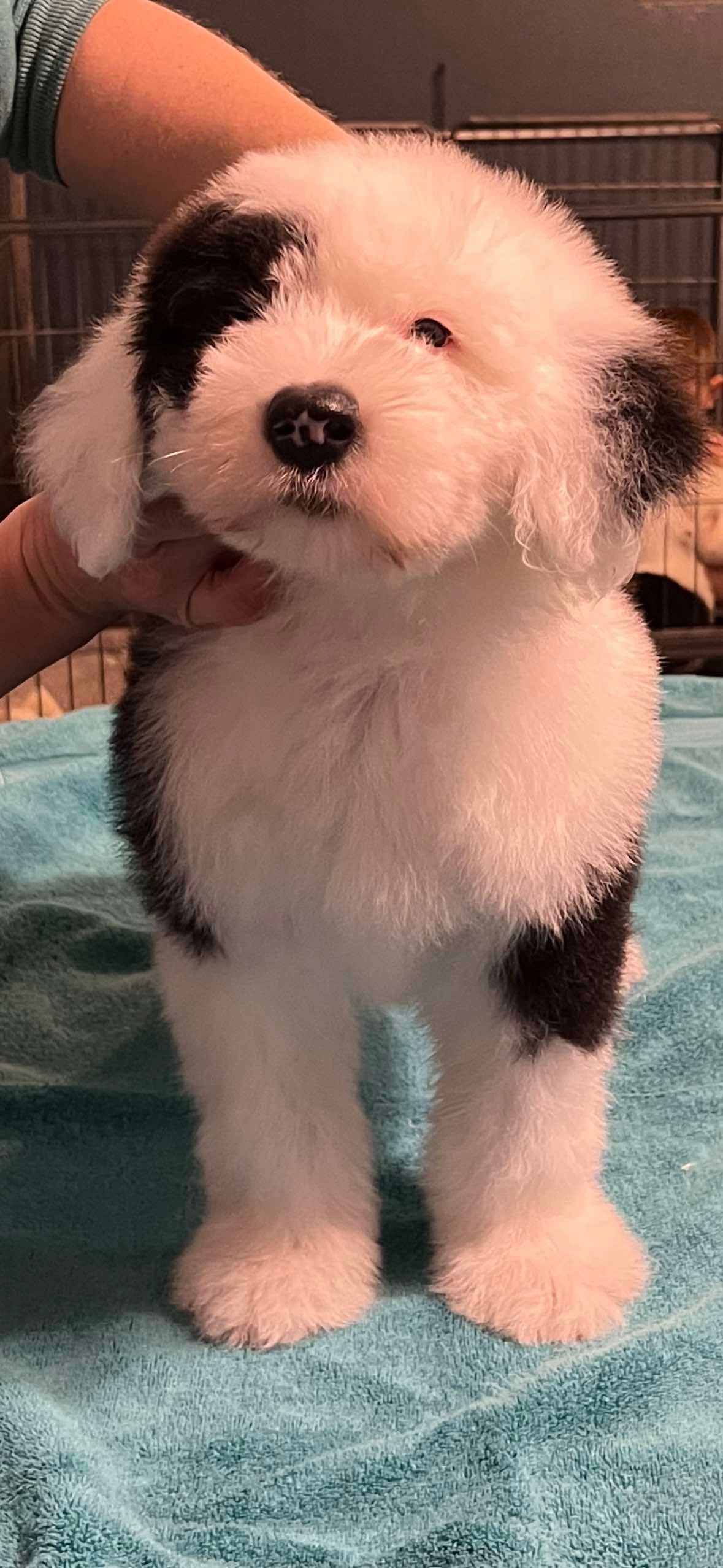 The puppy pictured above is “Graham,” GCH Bugaboo’s Give Me S’more, bred and owned by Bugaboo Old English Sheepdogs and handled by Colton & Heather Johnson.