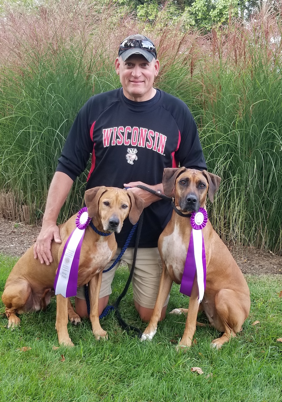 Wayne fell into the dog world quite by accident, not that anyone who knew him would ever think so. When he and Teri married in 1999, she wanted “something to cuddle with” during his long work hours. So, they got a rescued ridgeback. Teri later admits she would have been happy with a cat, which was a huge surprise to Wayne! Somehow, I am not sure anyone can imagine “Big Wayne” as a cat person!