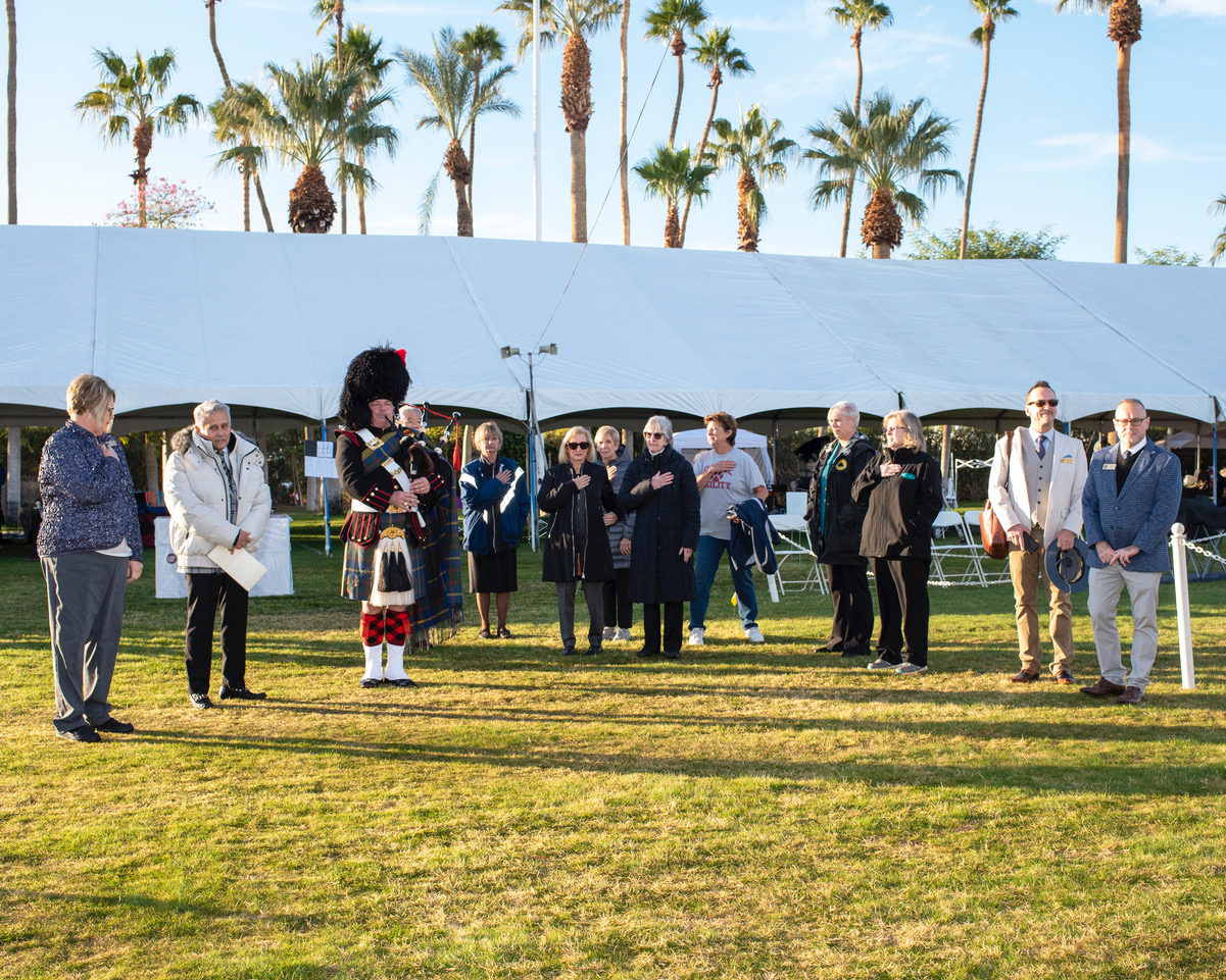 There was a grand opening to the festivities at Palm Springs today. A bagpiper in full regalia opened the show to the delight of many who are attending.