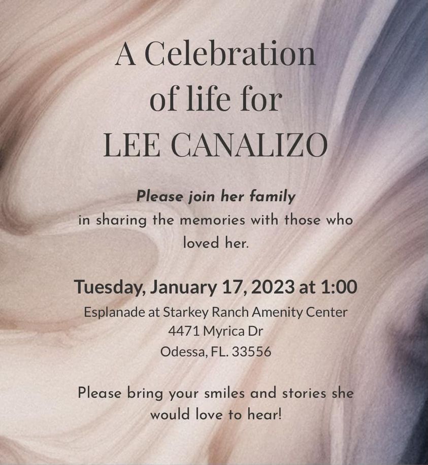 Lee’s Family wants to acknowledge all the “Sentiments” shared with her loved ones. To those confirmed to attend her “Celebration of Life” Tuesday, January 17, 2023 at 1pm: